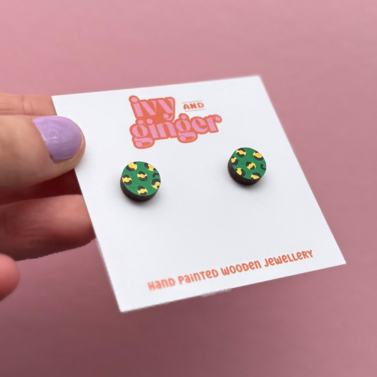 Green and gold leopard print circle stud earrings