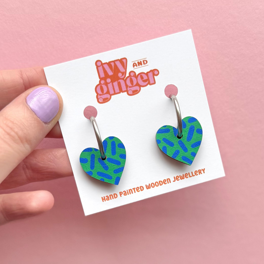 Green and blue dash print small heart hoop
