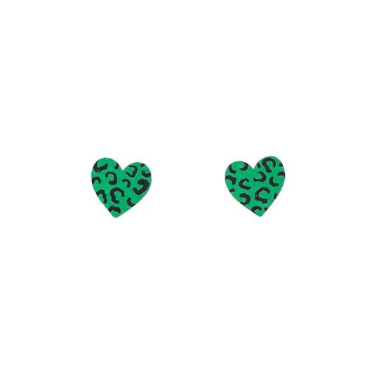 Mini green and black leopard print heart stud earrings